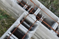 Ztracené bednění • Tvarovky z prostého vibrolisovaného betonu, které splňují parametry normy ČSN EN 771–3(A1). • Vyráběné rozměry: 500×150×250; 500×200×250; 500×250×250; 500×300×250; 500×400×250; 500×500×250 mm. • Tvarovky jsou vyrobeny z cementů, přírodních kameniv a ekologicky nezávadných zušlechťujících přísad a pigmentů. • Prvky ztraceného bednění jsou určeny ke zhotovení základů bez nutnosti použití formovacího bednění. • Profil tvarovek je uzpůsoben pro vkládání vodorovného armování a tvar bočnic prvků vytváří zámek, který urychluje samotnou realizaci a zjednodušuje její pracnost. Prvky se kladou na vazbu, a to na sucho, nebo za použití maltové směsi či stavebního lepidla a poté se pro zmonolitnění zalijí betonem, případně se konstrukce zpevní vodorovnou a svislou výztuží. Předpokladem pro bezpečné použití výztuže je odborný statický výpočet. • Prvky ZB splňují podmínky vyhlášky Státního úřadu pro jadernou bezpečnost o radiační ochraně číslo 307/2002 Sb. • Prvky ztraceného bednění se ukládají na vybudovaný základový pás.